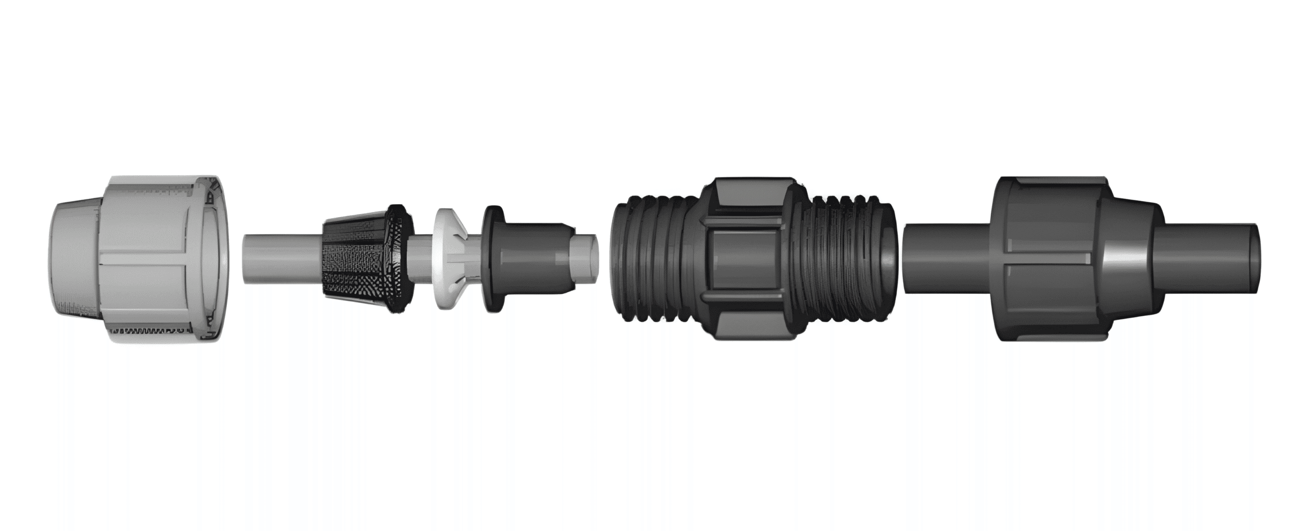They are engineered for plumbing, irrigation and water supply pipelines and feature our reliable compression design with an O-ring, grip ring, and nut that securely grips both types of pipe.